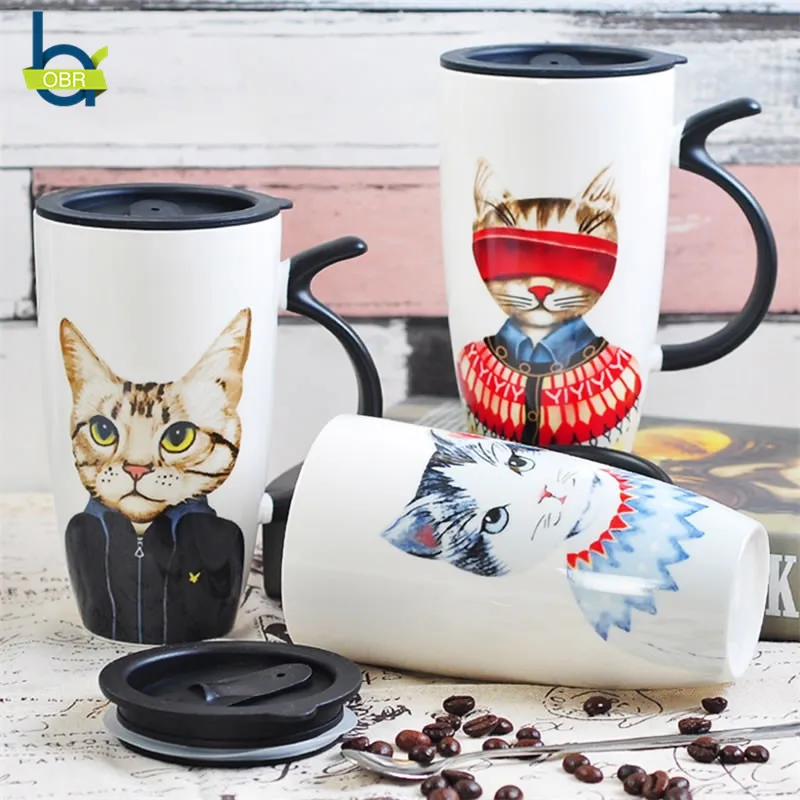Special Offer OBR 600 мл керамические чашки Креативный милый кот стакан для повторного использования кофе кружка с кофейным чашкой для чая друзья пара забав... Discount 35% Today!