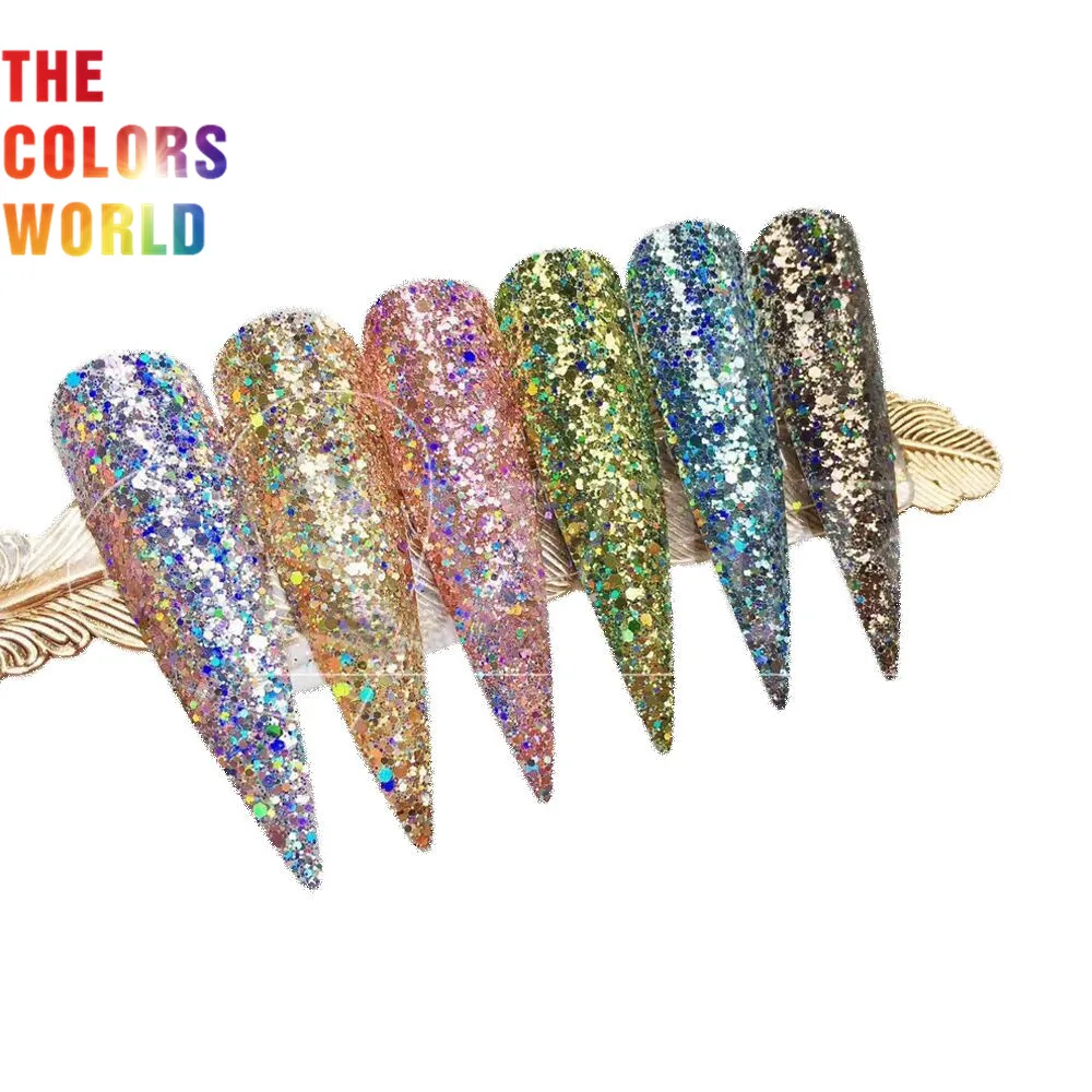 . [Скидка 0%] Купить TCT 347 голографическая устойчивая к растворению массивная смесь шестигранных ногтей Блеск для украшения ногтей боди арт макияж стакан подел... Цена Дешево.